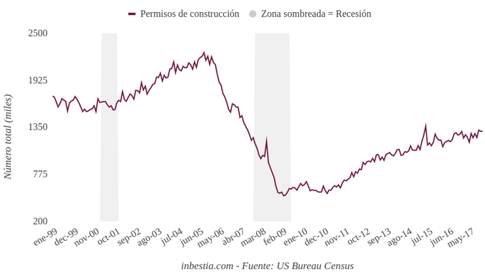 EEUU: Permisos de construcción 1.302.000 en diciembre El número de viviendas autorizadas por permisos de construcción en EEUU en los últimos 12 meses fue de 1.302.000 en diciembre, ligeramente por debajo del dato... 18 de enero, 2018
