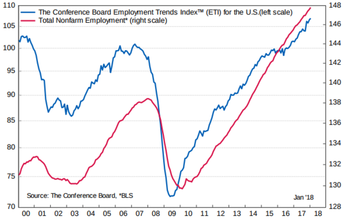 EEUU: Employment Trend Index 106,93 puntos en enero El indicador adelantado del mercado laboral estadounidense elaborado por The Conference Board, el Employment Trend Index, repuntó en enero hasta los 106,93 puntos, una... 5 de febrero, 2018