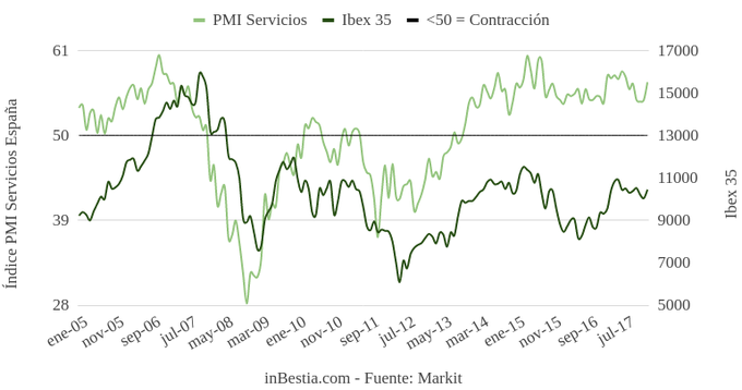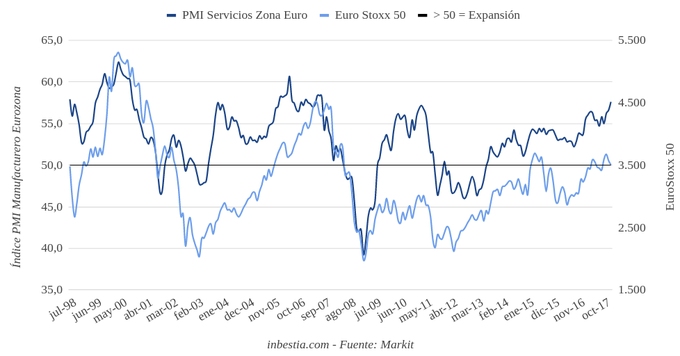 PMI Servicios Eurozona mes de enero: 58 El indicador de difusión sobre la actividad económica del sector servicios de la Eurozona, repuntó este mes de enero hasta los 58 puntos, su lectura más elevada desde el... 5 de febrero, 2018