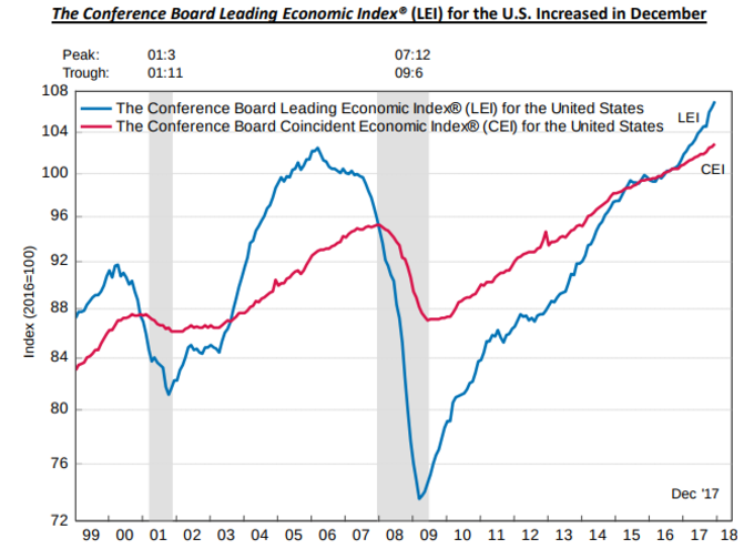 El indicador líder de EEUU repunta con fuerza un 0,6% en diciembre El indicador líder agregado de la economía estadounidense elaborado por The Conference Board, repuntó un 0,6% en diciembre hasta alcanzar los 107 puntos. En noviembre el... 27 de enero, 2018
