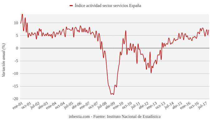España: Actividad Sector Servicios +7,3% interanual en noviembre Según el Instituto Nacional de Estadística, el índice de actividad del sector servicios aumentó un 2,1% en noviembre con respecto al mes anterior. Se trata de un dato... 22 de enero, 2018