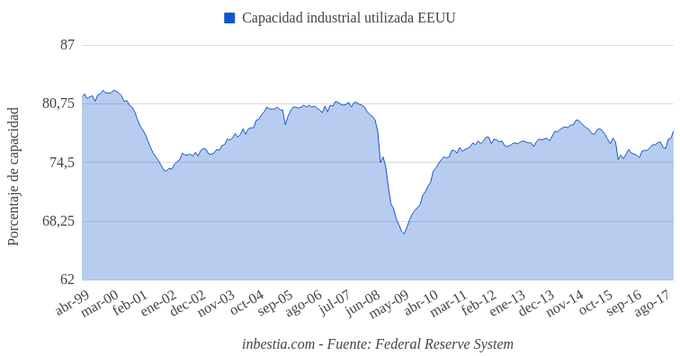 EEUU: Capacidad industrial utilizada 77,9% en diciembre Según la Reserva Federal, el porcentaje de capacidad industrial utilizada en diciembre fue del 77,9%, ocho décimas por encima del dato del mes anterior y muy por... 17 de enero, 2018