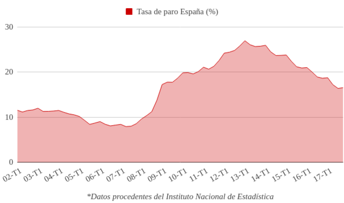 España: Tasa de paro 16,55% en el cuarto trimestre de 2017 Según la última Encuesta de Población Activa, la tasa de paro se situó en el 16,55% en el cuarto trimestre de 2017, un aumento de 0,16 puntos porcentuales con... 25 de enero, 2018