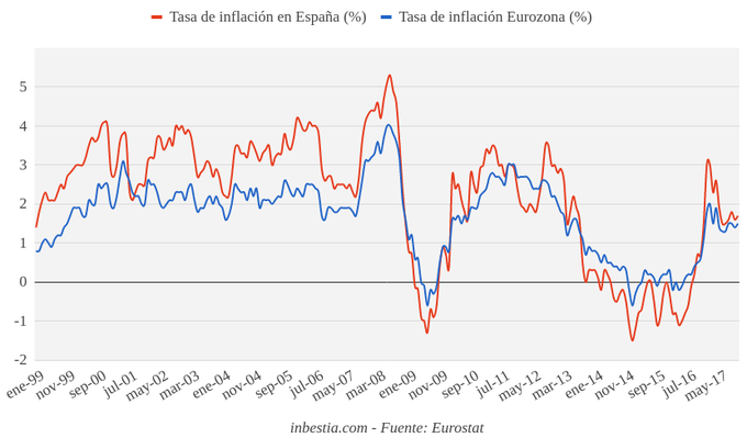 Eurozona: Tasa de inflación 1,5% en noviembre Eurostat ha confirmado el dato de inflación adelantado en la zona euro del 1,5% en noviembre, una décima superior al dato del mes anterior. La tasa de inflación se frena... 18 de diciembre, 2017