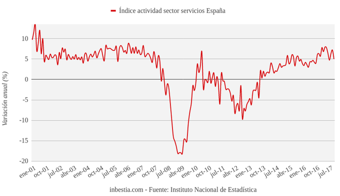 España: Actividad Sector Servicios +5% interanual en octubre Según el Instituto Nacional de Estadística, el índice de actividad del sector servicios descendió un 0,9% en octubre con respecto al mes anterior. Se trata de un dato... 21 de diciembre, 2017
