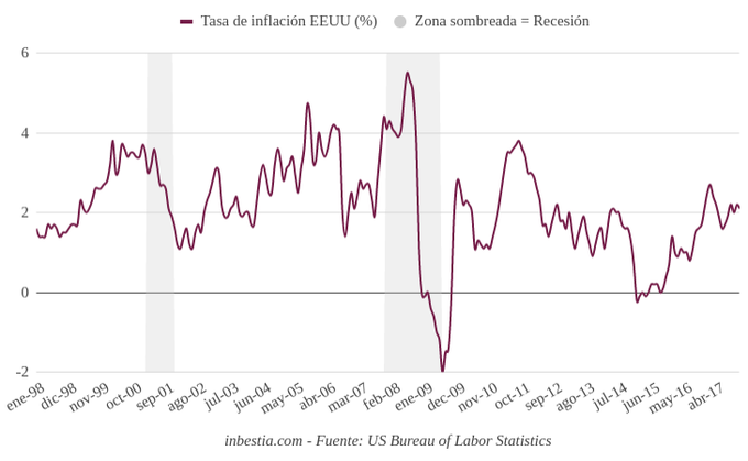 EEUU: Tasa de inflación anual 2,1% en diciembre La tasa de inflación anual en Estados Unidos se sitúa en el 2,1% en diciembre, una décima inferior al mes anterior. La tasa de inflación anual mide la variación... 12 de enero, 2018