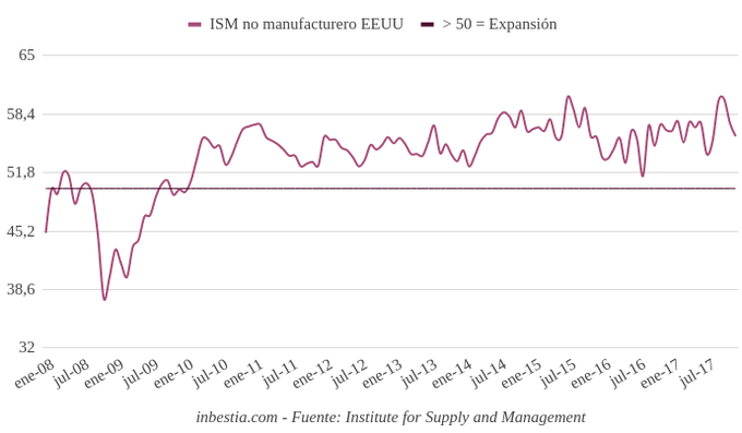 EEUU: Índice ISM no manufacturero 55,9 en diciembre El índice elaborado por Institute for Supply Management (ISM) para el sector no manufacturero alcanzó en diciembre el nivel de 55,9, un dato significativamente inferior al... 5 de enero, 2018
