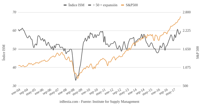 EEUU: Índice ISM Manufacturero 59,7 en diciembre El dato de diciembre del Índice Manufacturero ISM fue de 59,7, claramente por encima del dato del mes anterior de 58,2. Este indicador refleja la actividad industrial de la... 3 de enero, 2018
