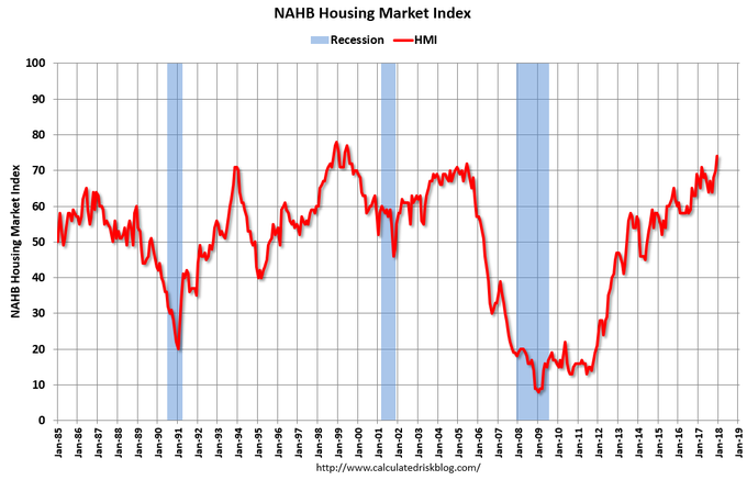 El índice de confianza de los constructores alcanza un nuevo máximo cíclico en 74 puntos El índice de confianza de los constructores de la Asociación Nacional de Constructores de EEUU (NAHB por sus siglas en inglés) repunta fuertemente este mes de diciembre... 18 de diciembre, 2017