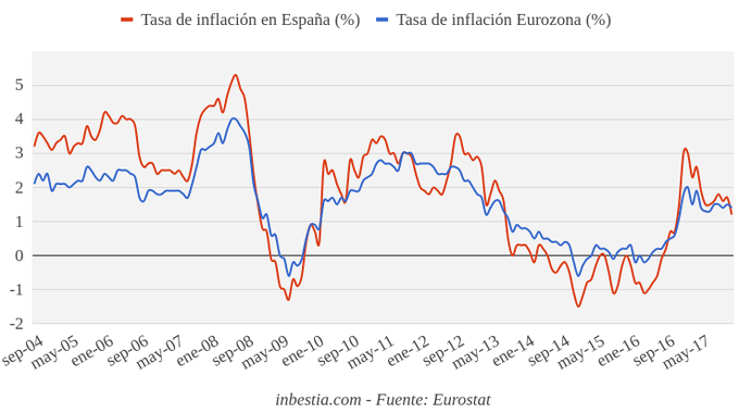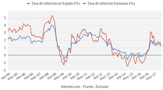 Eurozona: Tasa de inflación 1,4% en diciembre Eurostat ha confirmado el dato de inflación adelantado en la zona euro del 1,4% en diciembre, una décima inferior al dato del mes anterior. La tasa de inflación se frena... 17 de enero, 2018