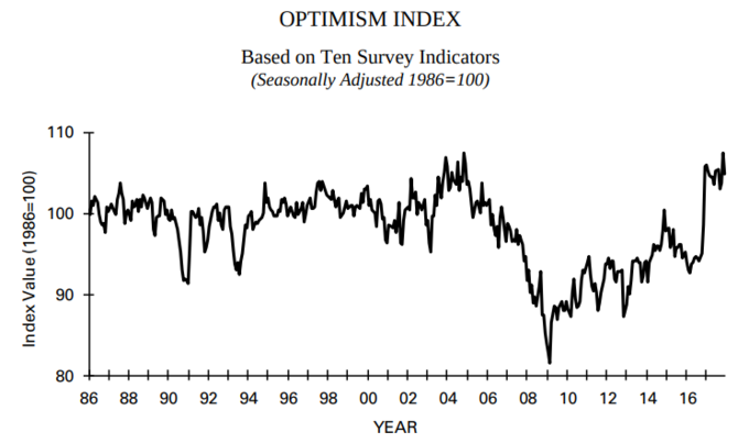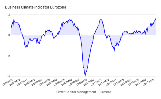 El índice de confianza empresarial de la Eurozona alcanza niveles nunca vistos El índice de confianza empresarial del conjunto de la Eurozona, obtenido tras una encuesta a 40.000 firmas europeas, alcanzó en diciembre el mayor punto desde el comienzo... 8 de enero, 2018