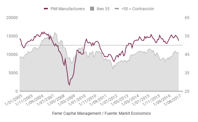 PMI Manufacturero España 55,8 en diciembre El índice de actividad del sector manufacturero industrial español, declinó ligeramente en diciembre hasta los 55,8 puntos. Una lectura por encima de 50 en este indicador... 2 de enero, 2018