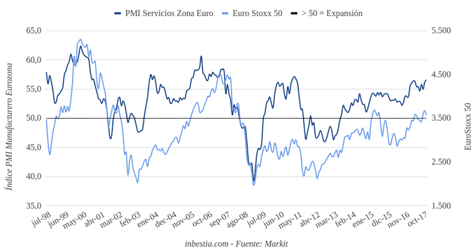 Eurozona: Índice Servicios PMI 56,6 en diciembre El dato adelantado de diciembre del Índice de Servicios PMI ha sido revisado una décima al alza hasta 56,6. El dato del mes anterior se ha confirmado en el nivel de 56,2.... 4 de enero, 2018