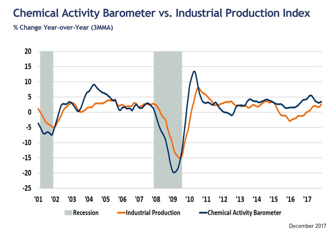 El índice de actividad del sector químico de EEUU repunta un 0,6% en diciembre El índice que mide la actividad económica del sector químico estadounidense, repuntó 6 décimas en diciembre con respecto a noviembre y crece un 3,7% en los últimos... 19 de diciembre, 2017