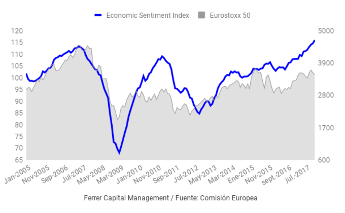 Eurozona: índice de sentimiento económico 116 puntos en diciembre El índice de sentimiento económico de la Eurozona ascendió el pasado mes de diciembre hasta los 116 puntos. Se trata de la lectura más elevada del actual ciclo expansivo... 8 de enero, 2018