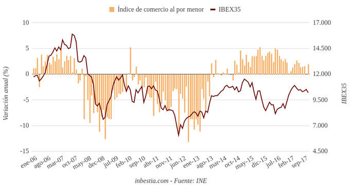 España: Índice de comercio al por menor +2% interanual en noviembre Según los datos procedentes del Instituto Nacional de Estadística, el volumen del comercio al por menor en España aumentó un 2% interanual en noviembre en términos... 27 de diciembre, 2017