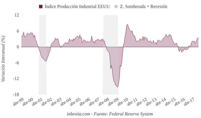EEUU: Índice de Producción Industrial +3,6% interanual en diciembre El índice de producción industrial en EEUU aumentó un punto porcentual en diciembre con respecto al mes anterior, acumulando una aumento del 3,6% en los últimos 12... 17 de enero, 2018