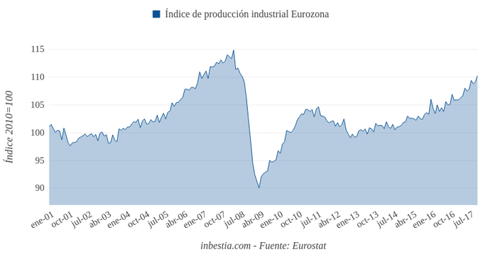 Eurozona: Índice de producción industrial +3,2% interanual en noviembre Según Eurostat, el índice de producción industrial para la zona euro alcanzó en octubre el nivel de 110,3, superior al dato del mes anterior de 109,2. El indicador sigue... 11 de enero, 2018