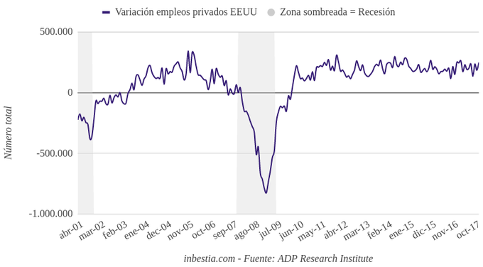 EEUU: +250.000 empleos en el sector privado en diciembre La economía norteamericana creó 250.000 empleos en el sector privado durante el mes de diciembre, según la entidad privada Automatic Data Processing. Este dato se... 4 de enero, 2018
