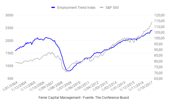 EEUU: Employment Trend Index 107,10 puntos en diciembre El indicador adelantado del mercado laboral estadounidense elaborado por The Conference Board, el Employment Trend Index, repuntó en diciembre hasta los 107,10 puntos, una... 8 de enero, 2018