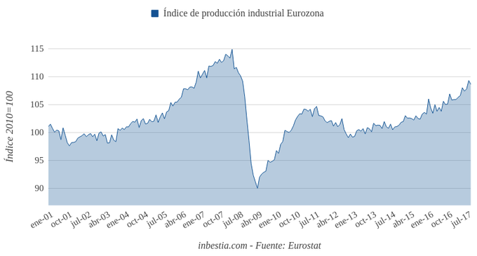 Eurozona: Índice de producción industrial +3,3% interanual en septiembre Según Eurostat, el índice de producción industrial para la zona euro alcanzó en septiembre el nivel de 108,6, ligeramente inferior al dato del mes anterior de 109,3. El... 14 de noviembre, 2017