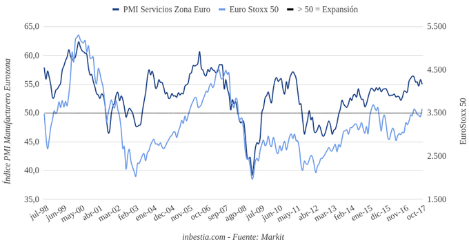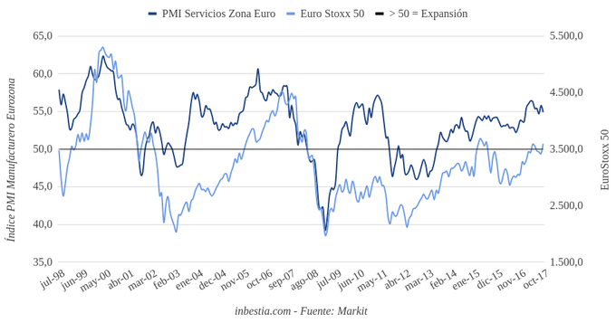 Eurozona: Índice Servicios PMI 55 en octubre El dato adelantado de octubre del Índice de Servicios PMI ha sido revisado una décima al alza hasta 55. El dato del mes anterior se ha confirmado en el nivel de 55,8. El... 6 de noviembre, 2017