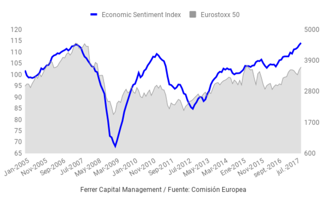 Eurozona: Índice Sentimiento Económico 114 en septiembre El índice de sentimiento económico (consumidores y empresas) de la Eurozona aumentó este mes hasta los 114 puntos, un salto de 0,9 puntos con respecto a septiembre. Se... 30 de octubre, 2017