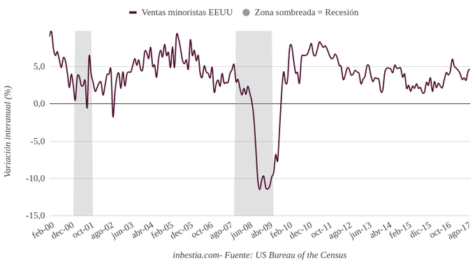 EEUU: Ventas minoristas +4,6% interanual en octubre Según el Instituto Nacional de Estadística estadounidense (US Bureau Census), las ventas minoristas aumentaron un 0,2% en octubre respecto al mes anterior. En cuanto a su... 15 de noviembre, 2017