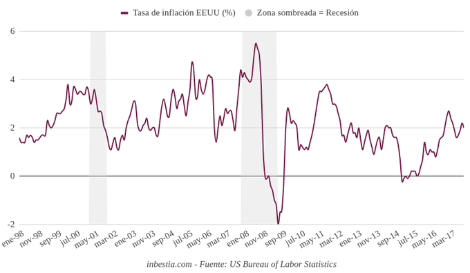 EEUU: Tasa de inflación anual 2% en octubre La tasa de inflación anual en Estados Unidos se sitúa en el 2% en octubre, dos décimas inferior al mes anterior. La tasa de inflación anual mide la variación porcentual... 15 de noviembre, 2017