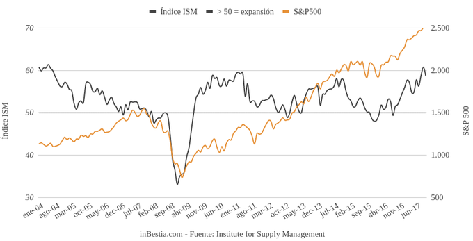 EEUU: Índice ISM Manufacturero 58,7 en octubre El dato de octubre del Índice Manufacturero ISM fue de 58,7, claramente por debajo del dato del mes anterior de 60,8. Este indicador refleja la actividad industrial de la... 1 de noviembre, 2017