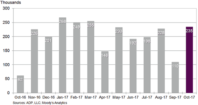 EEUU: +235.000 empleos en el sector privado en octubre La economía norteamericana creó 235.000 empleos en el sector privado durante el mes de octubre, según la entidad privada Automatic Data Processing. Este dato se encuentra... 1 de noviembre, 2017