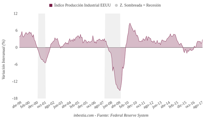 EEUU: Índice de Producción Industrial +2,9% interanual en octubre El índice de producción industrial en EEUU aumentó 9 décimas en octubre con respecto al mes anterior, acumulando una aumento del 2,9% en los últimos 12 meses. Este... 17 de noviembre, 2017