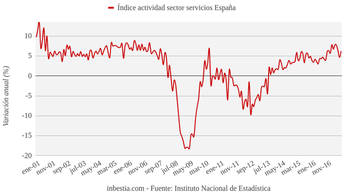 España: Actividad Sector Servicios +6,2% interanual en agosto Según el Instituto Nacional de Estadística, el índice de actividad del sector servicios aumentó un 1,1% en agosto con respecto al mes anterior. Se trata de un dato... 23 de octubre, 2017