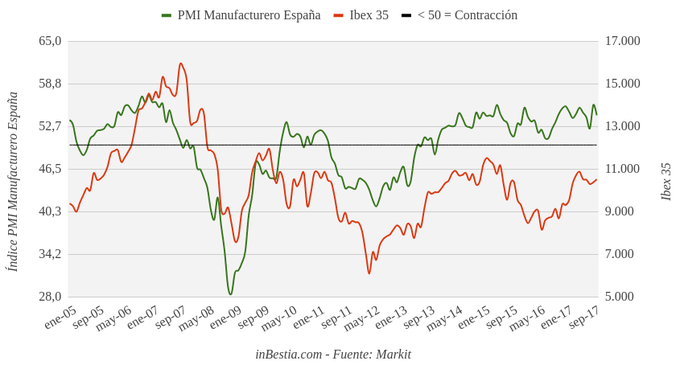 España: PMI Manufacturero 55,8 en octubre El indicador de actividad industrial elaborado por Markit Economics ha establecido el dato de octubre para España en el nivel del 55,8, claramente por encima de la lectura... 2 de noviembre, 2017