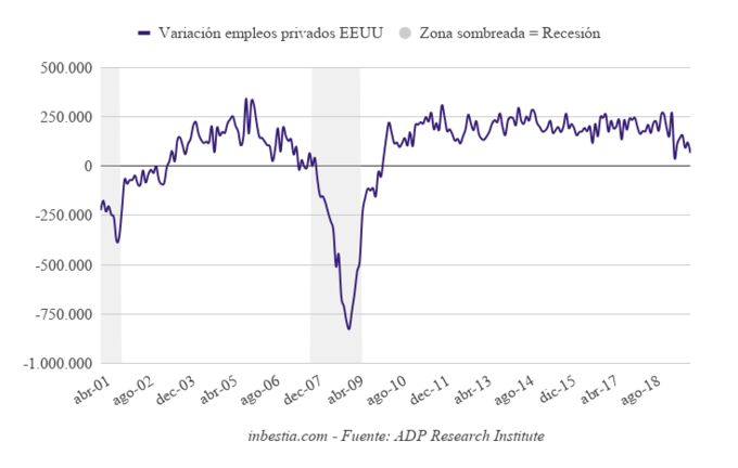 EEUU: +67.000 empleos en el sector privado en noviembre La economía norteamericana creó 67.000 empleos en el sector privado durante el mes de noviembre, según la entidad privada Automatic Data Processing. Este dato se... 4 de diciembre, 2019