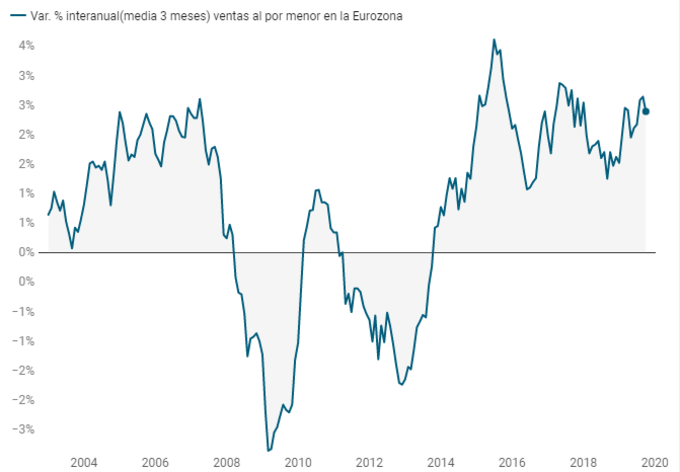 Eurozona: ventas minoristas -0,6% en octubre Según datos difundidos por Eurostat, la agencia estadística de la Unión Europea, el comercio minorista declinó seis décimas en octubre con respecto al mes de... 5 de diciembre, 2019