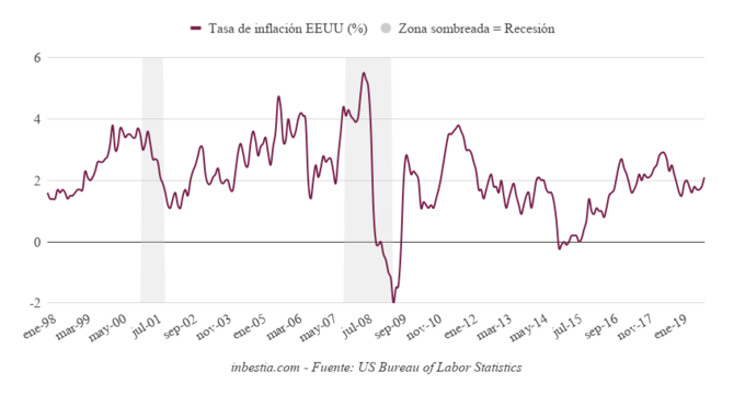 EEUU: Tasa de inflación anual 2,1% en noviembre La tasa de inflación anual en Estados Unidos se sitúa en el 2,1% en noviembre, tres décimas superior al mes anterior. La tasa de inflación anual mide la variación... 11 de diciembre, 2019