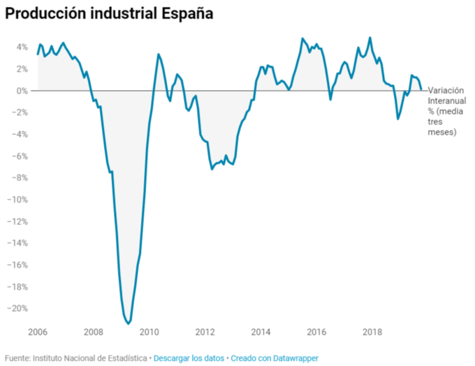 España: producción industrial -0,4% en octubre Según datos publicados esta mañana por el Instituto Nacional de Estadística español, la producción industrial declinó cuatro décimas en octubre con respecto a... 5 de diciembre, 2019