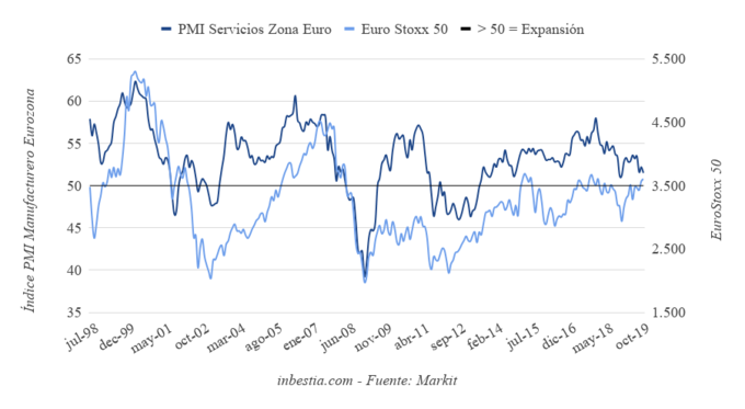 Eurozona: Flash PMI Servicios 51,5 en noviembre Según el dato adelantado de Markit, la actividad del sector servicios en la zona euro se desaceleró ligeramente en noviembre, marcando el índice una lectura de 51,5... 22 de noviembre, 2019