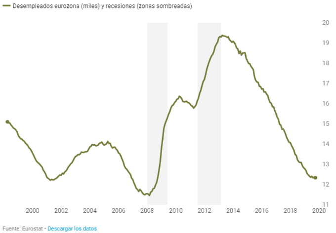 Eurozona: -31.000 parados en octubre El número de ciudadanos de la eurozona en situación de desempleo, declinó en 31.000 en el mes de octubre con respecto al mes de septiembre, hasta un total de 12.334.000.... 29 de noviembre, 2019