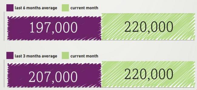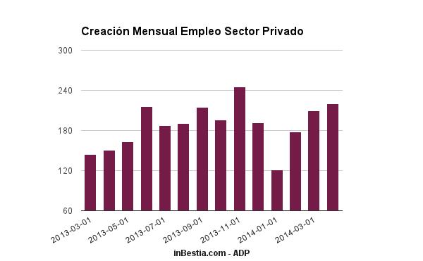Según informa hoy la entidad Automatic Data Processing, EEUU creó 220.000 puestos de trabajo en abril, por encima de los 209.000 del mes anterior (revisado al alza desde los 191.000) y ligeramente por encima del consenso que estimaba una creación de 215.000 puestos de trabajo.
