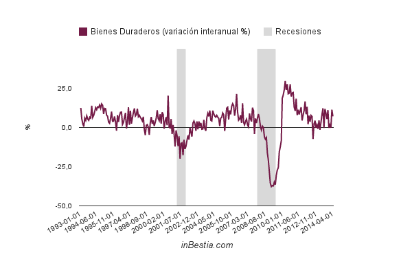 EEUU Pedidos Bienes Duraderos +0,8% Abril 27 de mayo, 2014 0Según datos oficiales sabidos hoy, las peticiones de bienes duraderos por parte del sector manufacturero repuntaron un 0,8% en abril con respecto al mes anterior cuando la expectativa era de una contracción del 1,3%. La variación intermensual del mes de marzo sobre el de febrero ha sido revisada al alza desde el 2,9% hasta el 3,6. La evolución anual es del +7,1%:me gusta (3)Usuarios a los que les gusta esta noticia:Escriba un nuevo comentarioIdentifíquese ó regístrese para comentar la noticia.Esta noticia no tiene comentarios