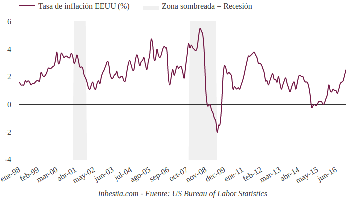 La tasa de inflación anual en Estados Unidos se sitúa en el 2,5% en enero, cuatro décimas superior al mes anterior, debido principalmente al incremento de los precios de los combustibles. La tasa de inflación anual mide la variación porcentual del índice de precios al consumo, el cual se calcula a través de una cesta de consumo representativa del consumidor estadounidense. A continuación, se muestra la serie histórica:
