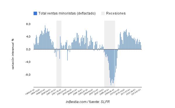 Las ventas minoristas en EEUU aumentaron un 0,1% cuando el consenso esperaba un retroceso de -0,3%. En la imagen, evolución anual: