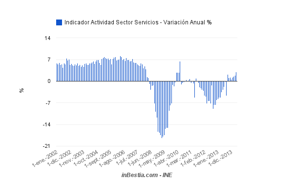 El Sector Servicios español crece al ritmo más elevado en 4 años 18 de junio, 2014 0Según datos ofrecidos hoy por el Instituto Nacional de Estadística, el sector servicios se expandió un 1% en el mes de abril con respecto a marzo de este mismo año. La evolución interanual (12 meses) queda en un crecimiento del 3%, el nivel más elevado desde junio de 2.010.me gusta (4)Usuarios a los que les gusta esta noticia:Escriba un nuevo comentarioIdentifíquese ó regístrese para comentar la noticia.Esta noticia no tiene comentarios