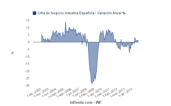 España: Cifra Negocio Industrial -1% Septiembre 14 de noviembre, 2014 0Según ha informado hoy el Instituto Nacional de Estadística español, la cifra de negocio industrial declinó un 1% en el mes de septiembre con respecto a agosto de este mismo año. No obstante, por sexto mes consecutivo la evolución interanual es positiva con un crecimiento del 1,3% entre septiembre de 2013 y septiembre de 2014.me gusta (1)Usuarios a los que les gusta esta noticia:Escriba un nuevo comentarioIdentifíquese ó regístrese para comentar la noticia.Esta noticia no tiene comentarios