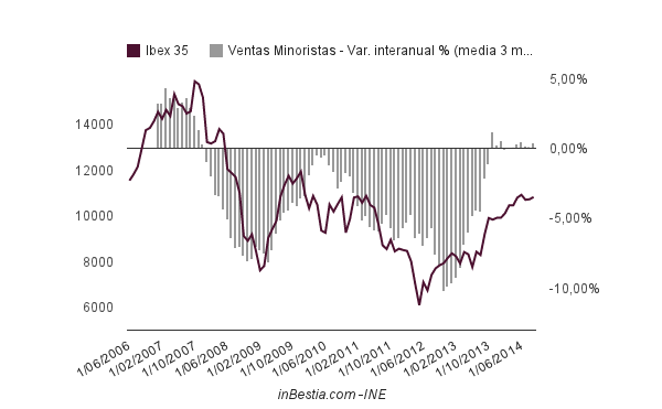 Según datos publicados hoy por el Instituto Nacional de Estadística español, las ventas al por menor declinaron un 1,8% en el mes de septiembre con respecto a agosto.La variación anual es positiva por segundo mes consecutivo con un crecimiento del 1,09% entre septiembre de 2013 y septiembre de este año.