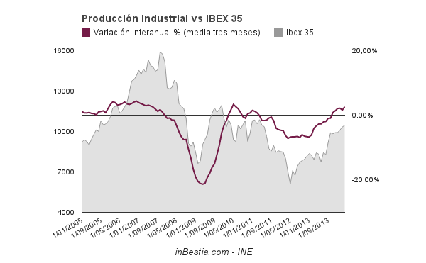 La producción industrial española crece el 1,6% 6 de junio, 2014 0Según ha anunciado hoy el Instituto Nacional de Estadística, la producción industrial española se incrementó un 1,6% entre el mes de marzo y abril de 2014 y un 4,32% en tasa interanual. me gusta (1)Usuarios a los que les gusta esta noticia:Escriba un nuevo comentarioIdentifíquese ó regístrese para comentar la noticia.Esta noticia no tiene comentarios